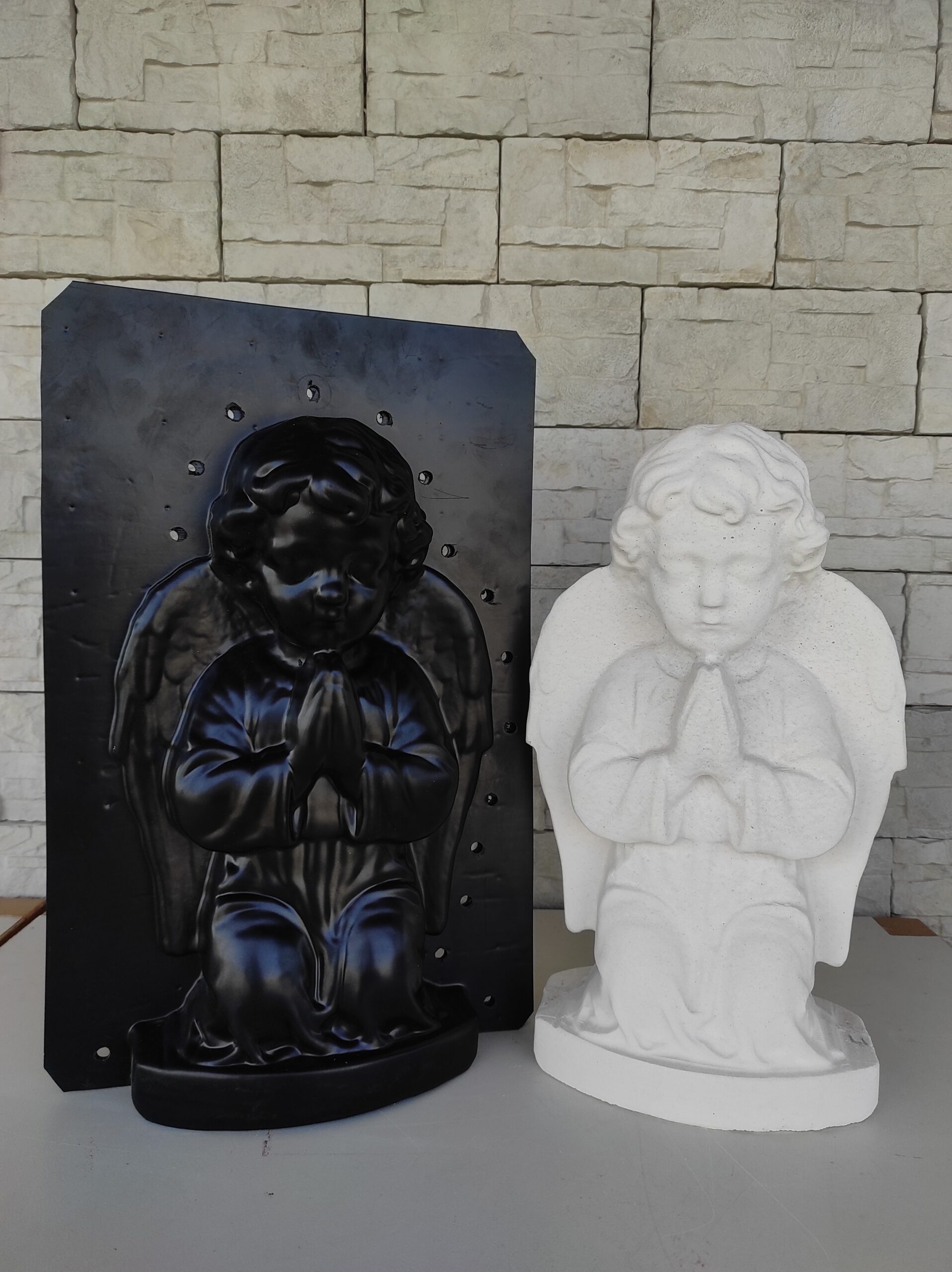 Este realizata din ABS de inalta calitate, un material foarte rezistent, conceputa pentru utilizari repetate, oferind o turnare precisa si o fidelitate ridicata a detaliilor, de la expresia fetei pana la pliurile fine ale vesmantului. Forma permite o demulare uosara si un finisaj final curat, reducand necesitatea interventiilor ulterioare.
