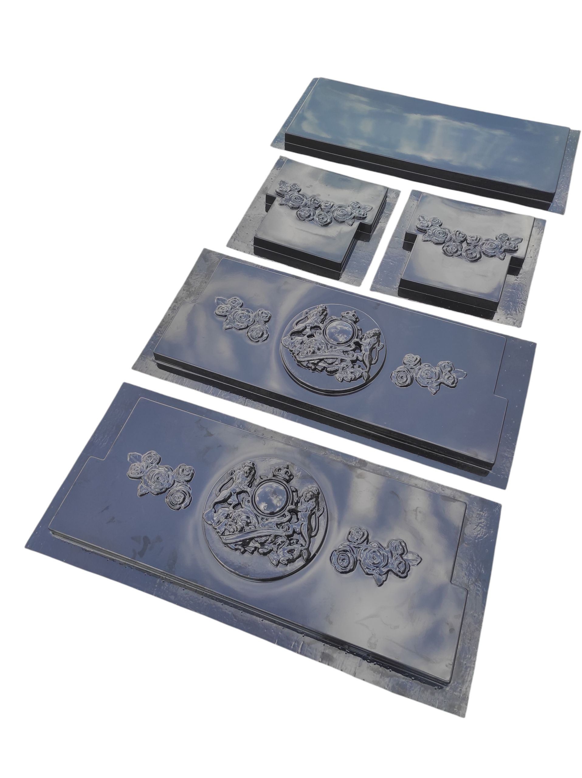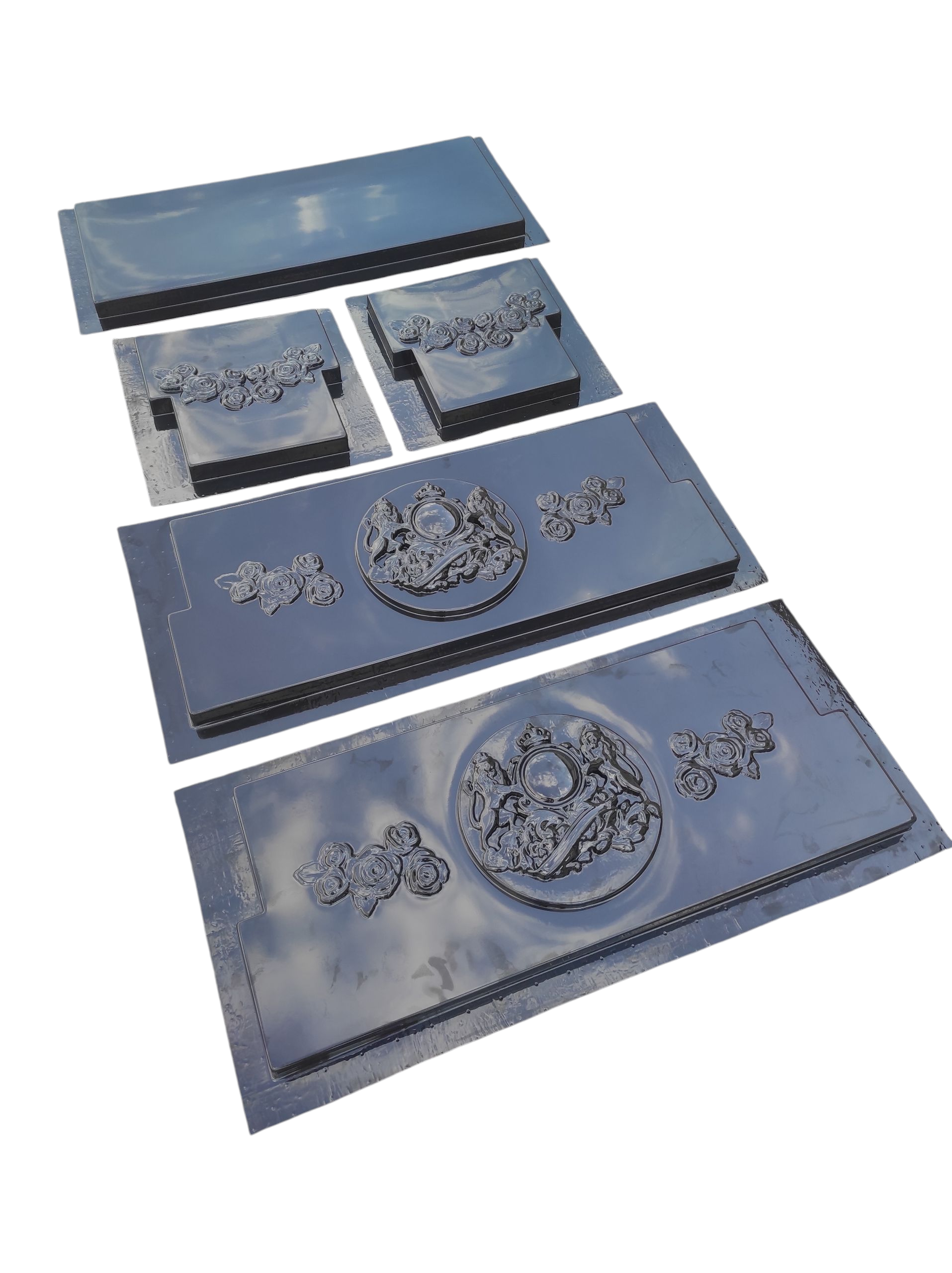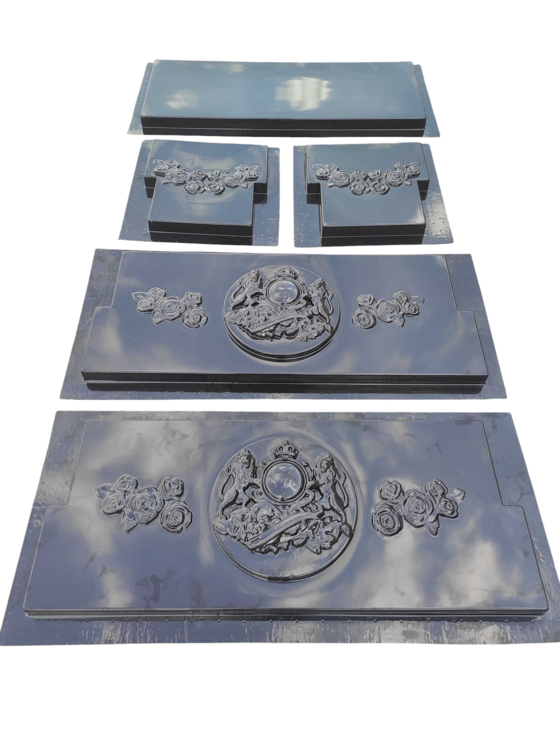 Este o piesa decorativa cu inspiratie clasica, ce imbina eleganta heraldica cu rafinamentul detaliilor sculpturale. Designul sau este pus in valoare de un medalion central impunator, decorat cu lei incoronati – simbol al fortei, nobletii si durabilitatii – completat armonios de motive florale in relief fin.